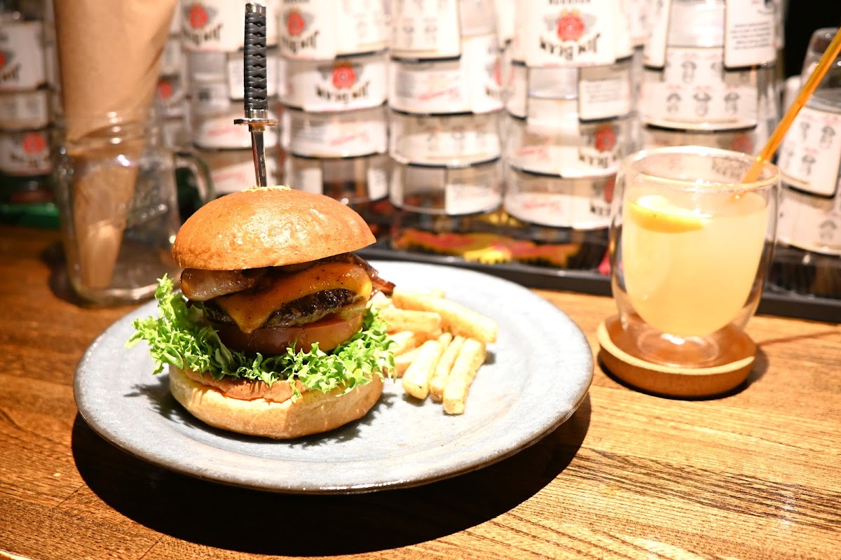 Sides at Bar & Grill Burger Chop are equally tempting. The Onion Rings are golden and crunchy, providing the ideal companion to any burger. Pair your meal with a refreshing 自家製ジンジャーエール, which is zesty, lightly sweet, and made in-house, making every sip feel special. The beverage really complements both the hearty flavors of the burgers and the lighter sides, creating a well-rounded meal experience.