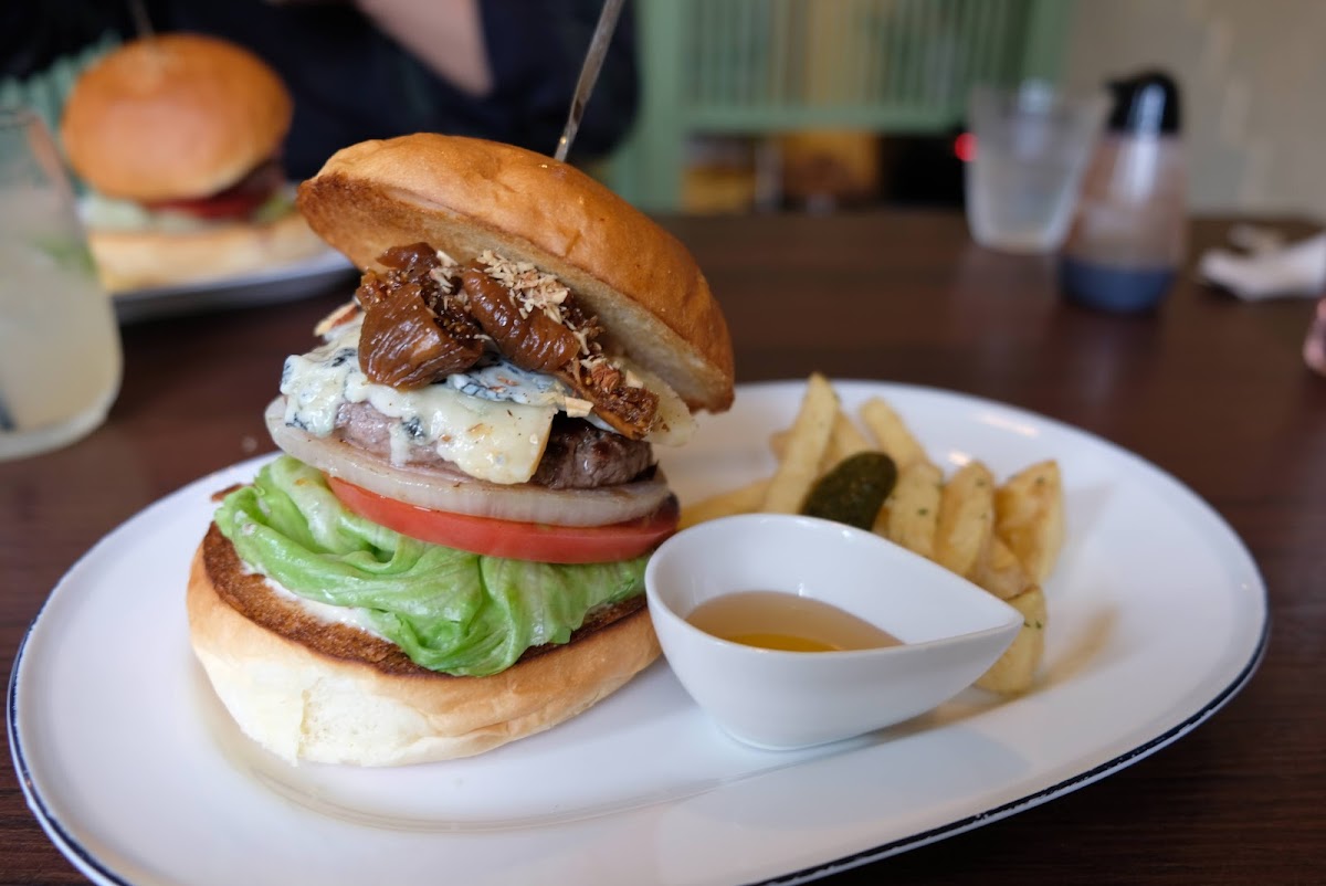 The menu here is a dream for burger enthusiasts. Classic lovers will appreciate the チェダーチーズバーガー, perfectly balanced with rich cheddar melted over a juicy patty. For something more adventurous, the ゴルゴンゾーラチーズといちじくのバーガー is a must-try-it’s an unexpected, sophisticated combination of tangy gorgonzola and sweet figs that pairs beautifully with the freshly baked bun. The メンチカツ is another highlight, offering a crispy, savory experience that’s reminiscent of homemade comfort food but elevated with expert seasoning.